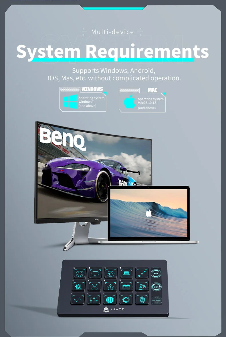 15 LCD keys: Tap to switch scenes, launch media, adjust audio, and more.